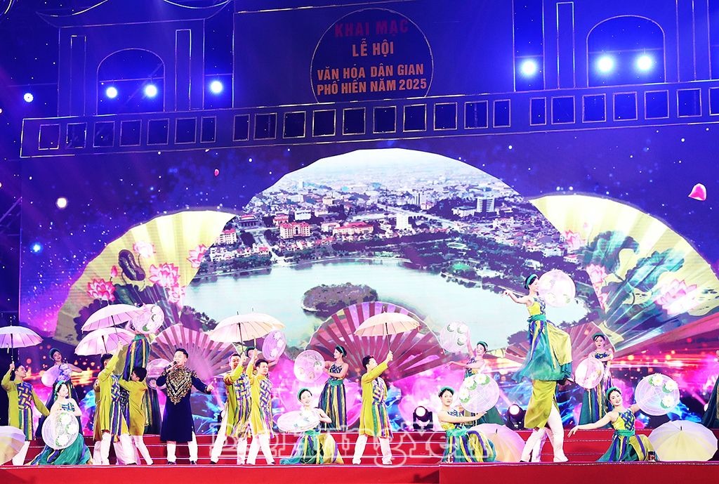 Một tiết mục nghệ thuật trong chương trình khai mạc Lễ hội Văn hóa dân gian Phố Hiến năm 2025