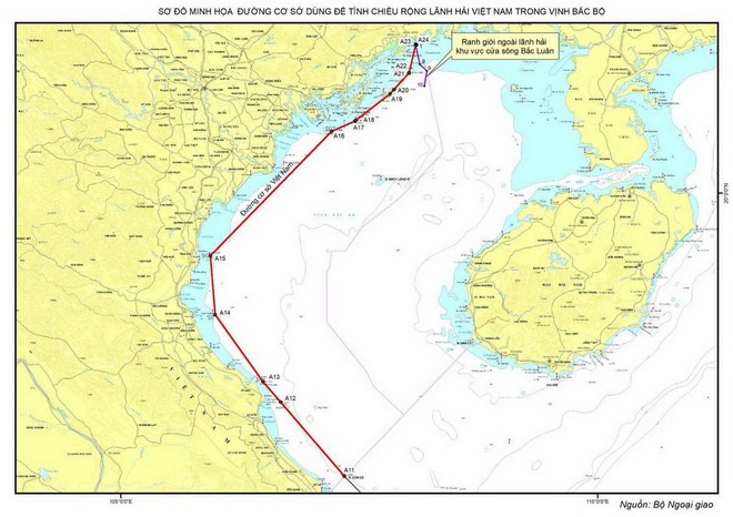 Đường cơ sở dùng để tính chiều rộng lãnh hải Việt Nam trong Vịnh Bắc Bộ. (Nguồn: Bộ Ngoại giao)