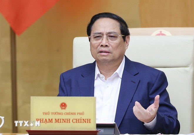 Thủ tướng Phạm Minh Chính chủ trì Phiên họp Chính phủ chuyên đề về xây dựng pháp luật tháng 4/2024. (Ảnh: Dương Giang/TTXVN)