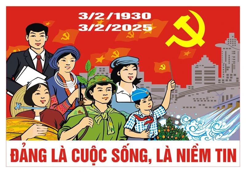 Tranh cổ động tuyên truyền kỷ niệm 95 năm Ngày thành lập Đảng Cộng sản Việt Nam (3/2/1930 - 3/2/2025).