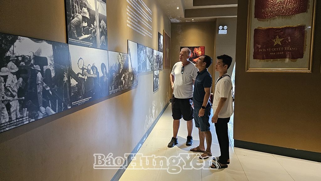 Du khách tham quan những hình ảnh, hiện vật tại Bảo tàng Vịnh Mốc
