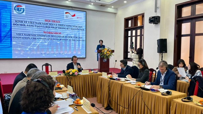 Tại hội thảo công bố báo cáo, tiến sỹ Trần Thị Hồng Minh, Viện trưởng CIEM, dự báo tình hình thế giới và khu vực trong năm 2025 sẽ khá phức tạp. Tại thời điểm này, các kịch bản xung quanh việc Mỹ gia tăng các biện pháp thuế quan và các công cụ chính sách thương mại khác còn nhiều bất định. Bên cạnh đó, những bất ổn chính trị ở nhiều nước cũng ảnh hưởng không nhỏ đến khả năng thúc đẩy đối thoại, hợp tác quốc tế trên nhiều lĩnh vực, đặc biệt là đầu tư, thương mại, chuyển đổi xanh... Khoa học-công nghệ đang phát triển nhanh đồng thời tạo ra sự thay thế cho việc làm của con người và phân bổ lao động quốc tế đang dần hiện hữu.