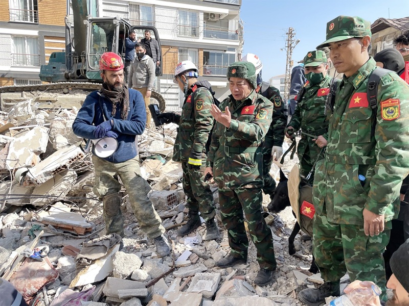 Các cán bộ, chiến sĩ Quân đội nhân dân Việt Nam tham gia tìm kiếm cứu nạn trong vụ động đất ở tỉnh Hatay, Thổ Nhĩ Kỳ, tháng 2-2023_Nguồn: qdnd.vn