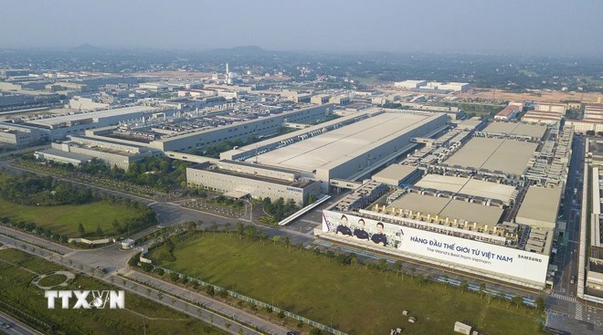 Công ty điện tử Samsung dẫn đầu ngành công nghệ thông tin với những sản phẩm chất lượng cao tại Khu Công nghiệp Yên Bình. (Ảnh: Minh Đức/TTXVN)