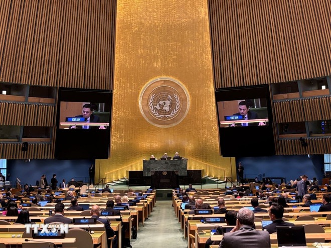 Trong bối cảnh căng thẳng địa chính trị gia tăng, Trưởng Phái đoàn Việt Nam nhấn mạnh Liên hợp quốc cần tiếp tục ưu tiên cho việc duy trì hòa bình, an ninh quốc tế, thúc đẩy các quốc gia thành viên đề cao, tuân thủ luật pháp quốc tế và Hiến chương Liên hợp quốc, kiềm chế không sử dụng vũ lực và giải quyết tranh chấp bằng biện pháp hòa bình.