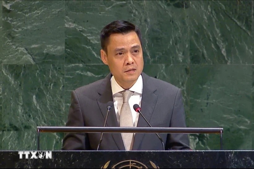 Đại sứ, Trưởng Phái đoàn Việt Nam tại Liên hợp quốc Đặng Hoàng Giang phát biểu tại phiên họp. (Ảnh: Thanh Tuấn/TTXVN)