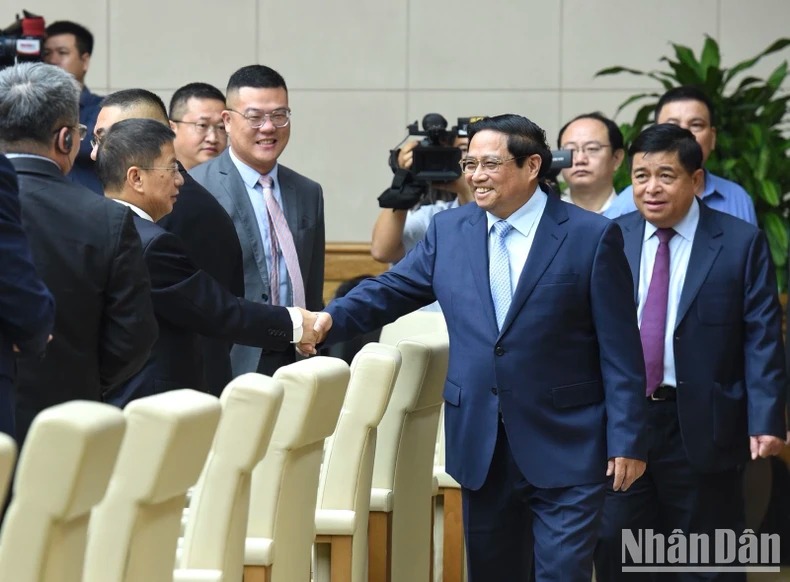 Sáng 14/5, tại Trụ sở Chính phủ, Thủ tướng Phạm Minh Chính chủ trì cuộc tọa đàm với các doanh nghiệp Trung Quốc tiêu biểu trong lĩnh vực phát triển kinh tế xanh, kinh tế số.