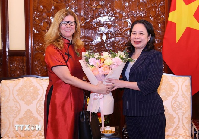 Phó Chủ tịch nước Võ Thị Ánh Xuân tiếp bà Silvia Danailov, Trưởng Đại diện Quỹ Nhi đồng Liên hợp quốc tại Việt Nam. (Ảnh: Văn Điệp/TTXVN)