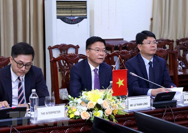 Bộ trưởng Bộ Tư pháp Việt Nam Lê Thành Long phát biểu. (Ảnh: An Đăng/TTXVN)