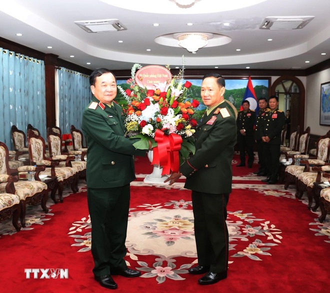 Thượng tướng Hoàng Xuân Chiến trân trọng gửi lời thăm hỏi và lời chúc mừng tốt đẹp nhất của Đại tướng Phan Văn Giang tới Thượng tướng Khamlieng Outhakaysone cùng toàn thể cán bộ, chiến sỹ Quân đội nhân dân Lào nhân dịp kỷ niệm 76 năm Ngày thành lập Quân đội nhân dân Lào (20/01/1949-20/01/2025).