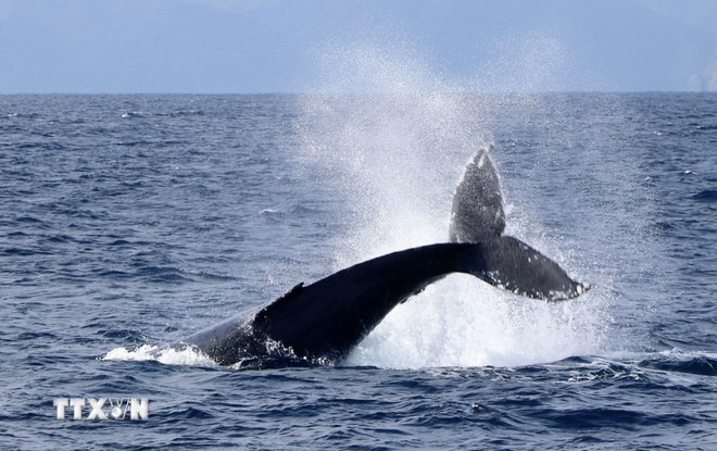 Cá voi ở vùng biển ngoài khơi đảo Amami-Oshima, tỉnh Kagoshima (Nhật Bản). (Ảnh minh họa: Kyodo/TTXVN)