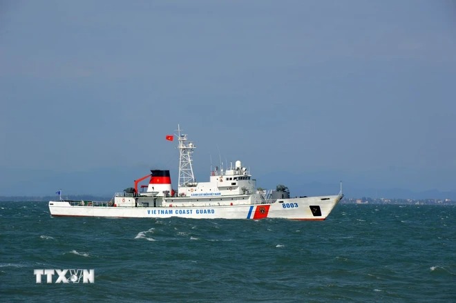 Tàu CSB 8003 trong chuyến tuần tra liên hợp giữa Cảnh sát biển Việt Nam và Trung Quốc. (Ảnh: TTXVN phát)