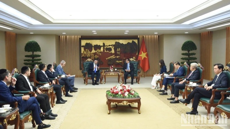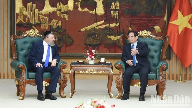 Thủ tướng Phạm Minh Chính tiếp ông Rabbi Yoav Ben Tzur, Bộ trưởng Lao động Israel. (Ảnh: TRẦN HẢI)