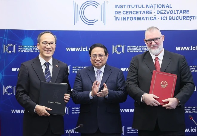 Cũng tại cuộc làm việc, trước sự chứng kiến của Thủ tướng Chính phủ Phạm Minh Chính, Viện Nghiên cứu và Phát triển Tin học Quốc gia Romania và Viện Công nghệ Số và Chuyển đối Số Quốc gia Việt Nam đã trao Biên bản ghi nhớ về hợp tác./