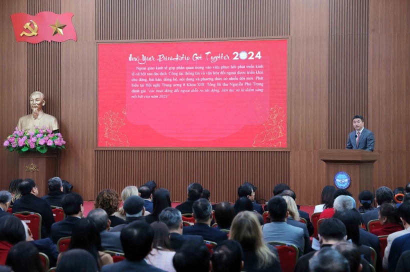 Tối 29/1, tại Hà Nội, Liên hiệp các tổ chức hữu nghị Việt Nam tổ chức Gặp mặt Hữu nghị chào Xuân Giáp Thìn 2024.