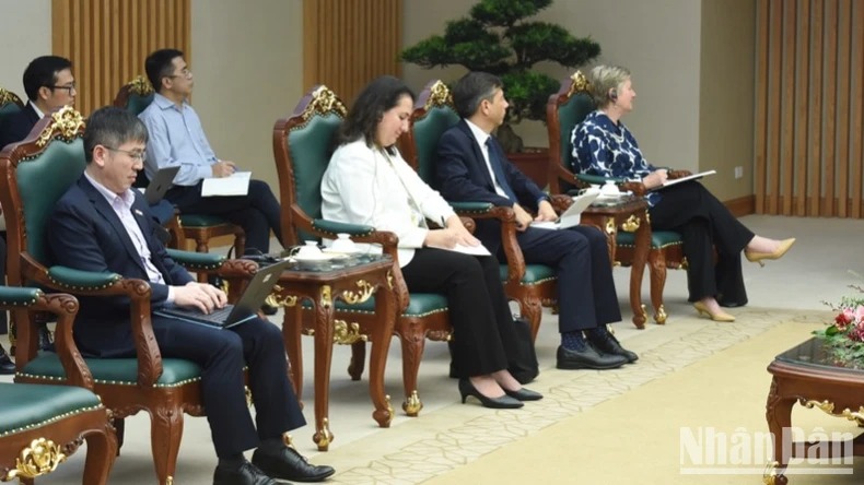 Thủ tướng Phạm Minh Chính tiếp bà Mariam J. Sherman, Giám đốc Quốc gia của Văn phòng Ngân hàng Thế giới (WB) khu vực Việt Nam, Lào, Campuchia. (Ảnh: TRẦN HẢI).