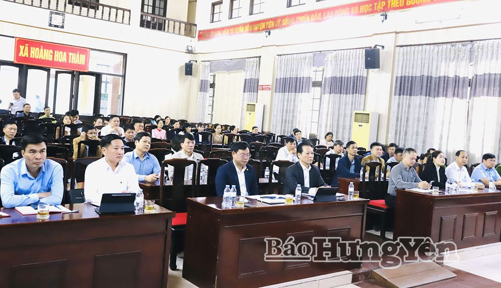 Các đại biểu dự hội nghị tại điểm cầu Đảng ủy xã Hoàng Hoa Thám.