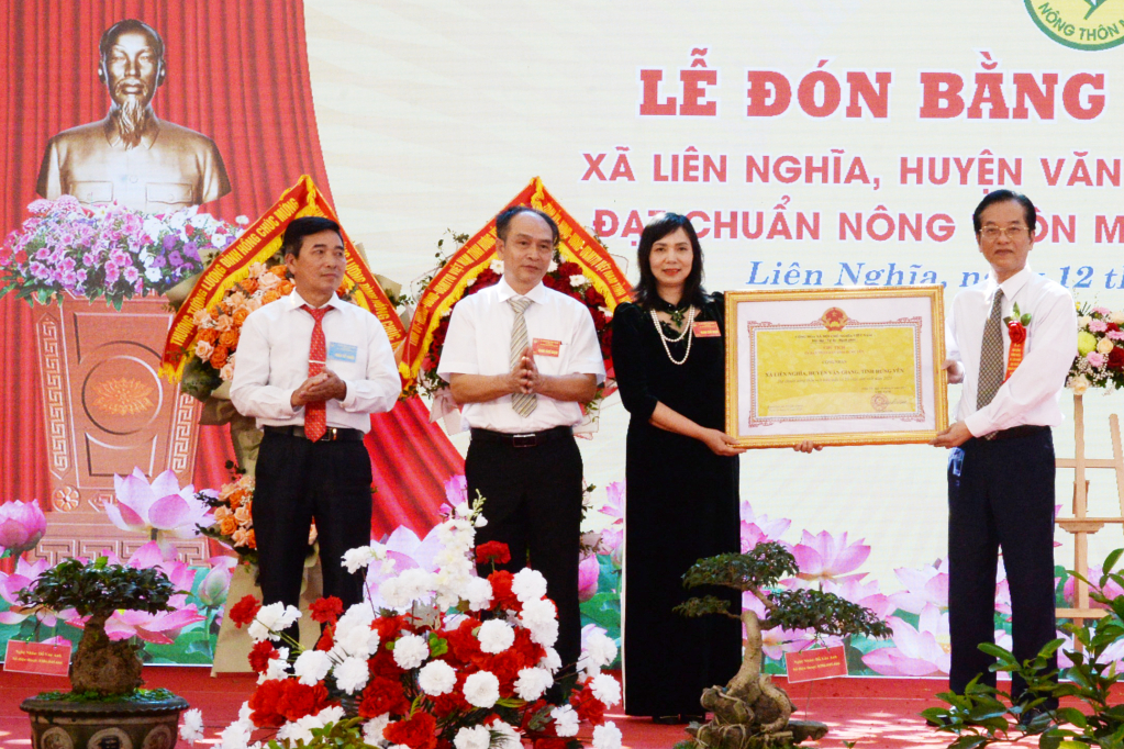 Tại buổi lễ, đồng chí Đỗ Minh Tuân, Giám đốc Sở Nông nghiệp và PTNT, Phó Trưởng ban Chỉ đạo thực hiện các chương trình mục tiêu quốc gia tỉnh trao Bằng công nhận xã đạt chuẩn NTM kiểu mẫu năm 2023 tặng Đảng bộ, chính quyền và Nhân dân xã Liên Nghĩa; trao Bằng khen của Chủ tịch UBND tỉnh tặng Nhân dân và cán bộ xã Liên Nghĩa vì có thành tích xuất sắc trong phong trào thi đua “Cả nước chung sức xây dựng nông thôn mới” năm 2023.