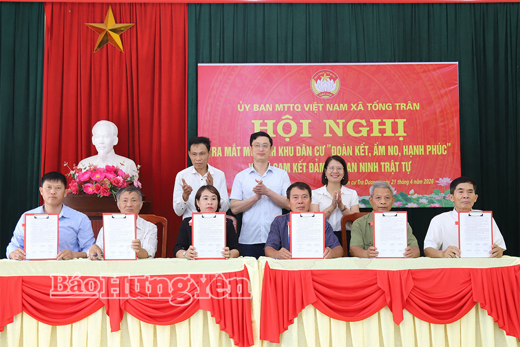 Tại hội nghị, đại diện Ban Thường trực Ủy ban MTTQ Việt Nam xã Tống Trân đã công bố quyết định thành lập Ban Vận động xây dựng mô hình điểm khu dân cư "Đoàn kết, ấm no, hạnh phúc" năm 2026 tại khu dân cư Trà Dương gồm 11 thành viên; đồng thời triển khai các nội dung, tiêu chí cụ thể của mô hình. Đại diện Ban Công tác Mặt trận khu dân cư Trà Dương, các chi hội đoàn thể ký giao ước thi đua thực hiện mô hình. Đại diện các hộ gia đình ký cam kết bảo đảm an ninh trật tự tại khu dân cư.