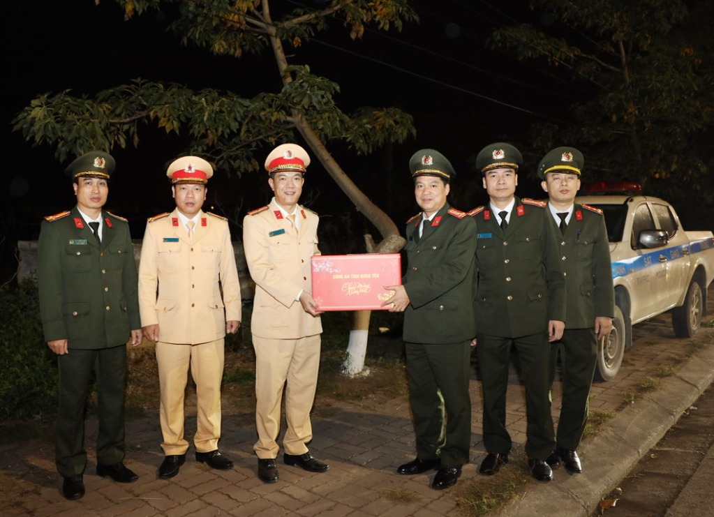 Đại tá Nguyễn Thanh Trường, Ủy viên Ban Thường vụ Tỉnh ủy, Giám đốc Công an tỉnh kiểm tra, tặng quà động viên lực lượng cảnh sát giao thông làm nhiệm vụ dịp Tết Nguyên đán 2024