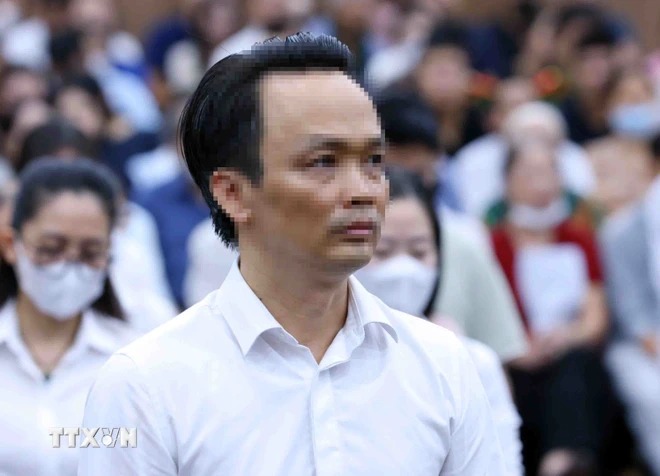 Bị cáo Trịnh Văn Quyết (cựu Chủ tịch Hội đồng quản trị Tập đoàn FLC, Chủ tịch Công ty Cổ phần Hàng không Tre Việt) bị Tòa tuyên phạt 21 năm tù. (Ảnh: Phạm Kiên/TTXVN)