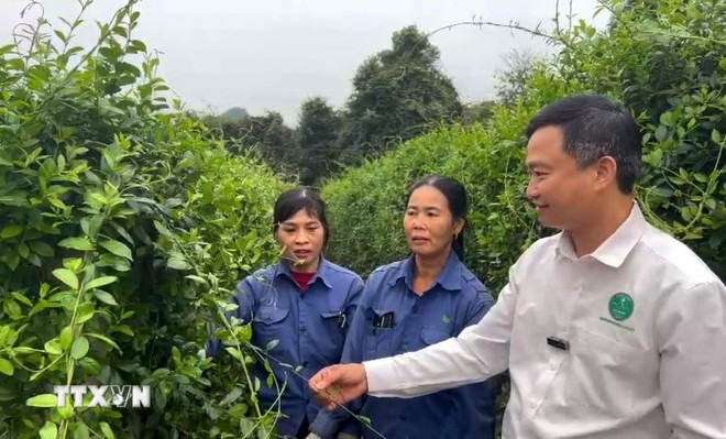 Anh Phan Xuân Diện, nguyên Phó trưởng Phòng Nông nghiệp và Phát triển nông thôn huyện Con Cuông (Nghệ An) xin nghỉ việc ở cơ quan nhà nước để ra ngoài trồng trọt, phát triển cây dược liệu, chế biến các sản phẩm từ dược liệu, bước đầu thành công với lựa chọn của bản thân. (Ảnh: Bích Huệ/TTXVN)