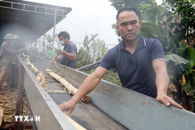Anh Lê Thế Phong, thôn Trung Thành, xã Lương Sơn, huyện Thường Xuân (Thanh Hóa) nghỉ việc nhà nước sau 13 năm làm giáo viên, năm 2020 ra ngoài xây dựng cơ sở băm dăm keo đã bước đầu thành công. (Ảnh: Việt Hoàng/TTXVN)